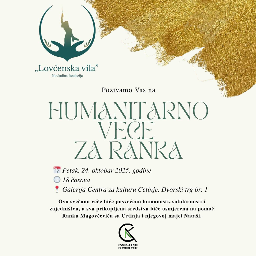 Nevladina fondacija „Lovćenska vila“ sa Cetinja organizuje humanitarno veče za Ranka Magovčevića, koje će se održati u petak, 24. oktobra 2025. godine u 18 časova, u Galeriji Centra za kulturu Prijestonice Cetinje.